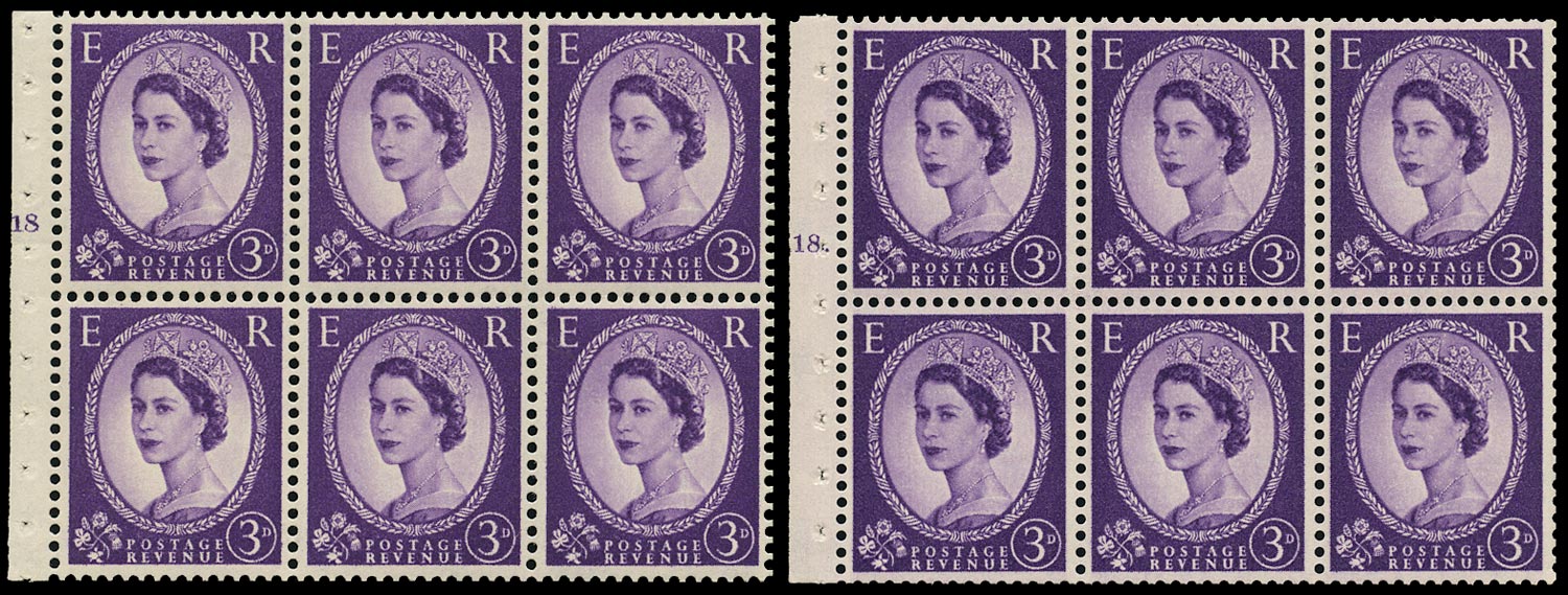 Great Britain 1958 Queen Elizabeth II 3d Purple Booklet Pane with Cylinder Varieties