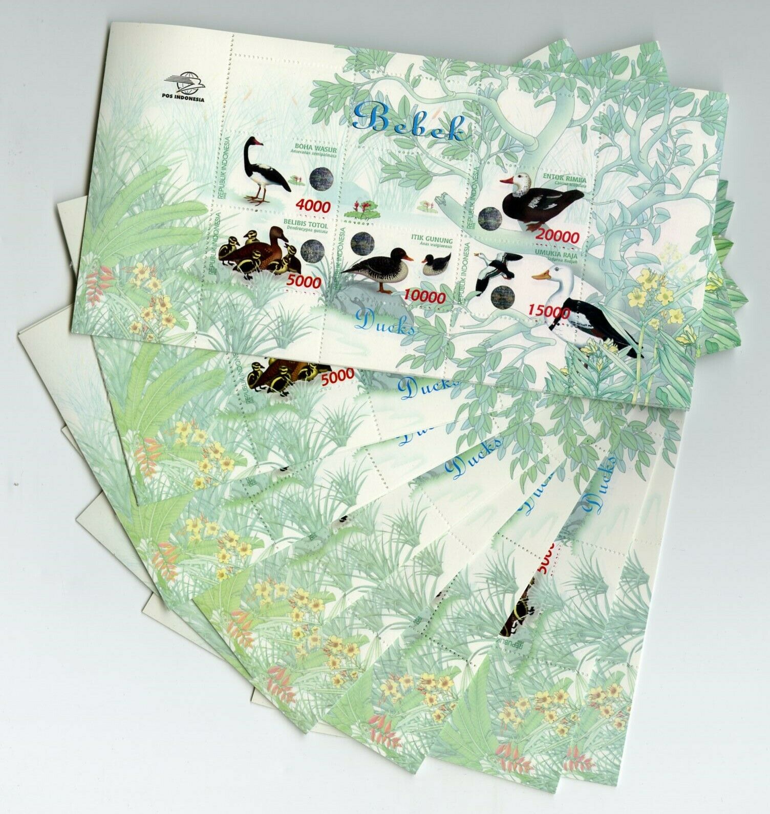 This listing is for a hoard of 80 sheets of Indonesian Scott #1804A, featuring a duck design. The stamps are in mint never hinged (NH) condition, indicating they are unused and in pristine state.