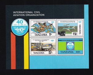 This imperforate souvenir sheet features six stamps, each showcasing a prominent African wildlife species. The designs include the lion, African elephant, black rhinoceros, leopard, Cape buffalo, and giraffe, representing the rich biodiversity of Tanzania's national parks.